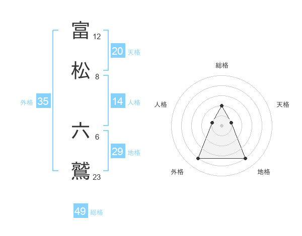 富松 六鷲さんの総格は49画の2点!