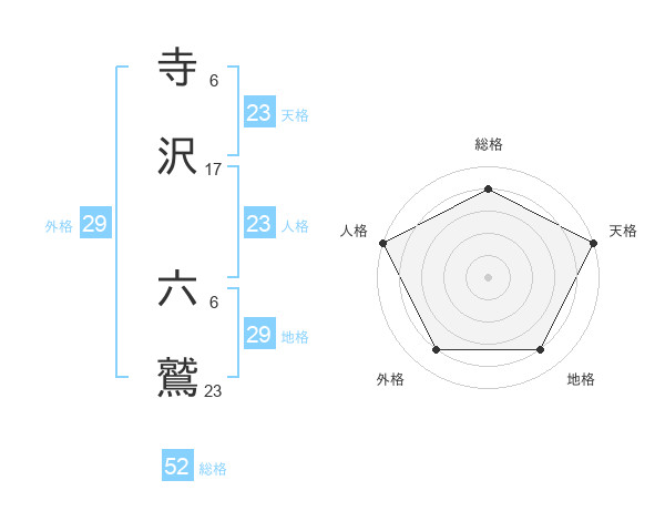 寺沢 六鷲さんの総格は52画の4点!