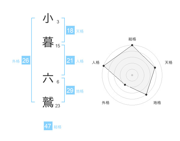 小暮 六鷲さんの総格は47画の5点!