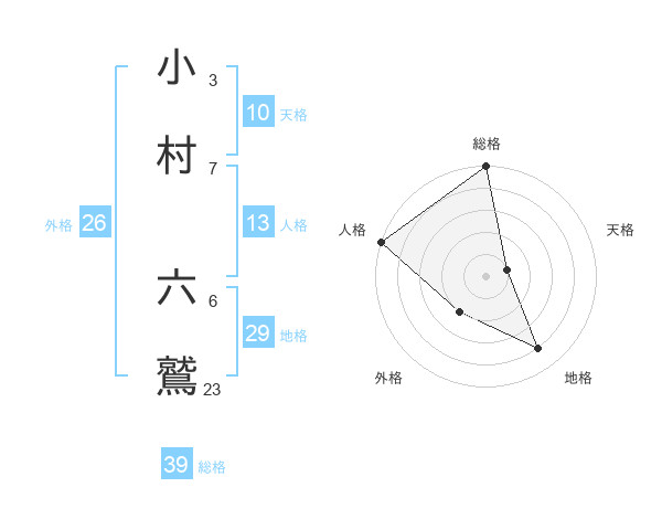 小村 六鷲さんの総格は39画の5点!