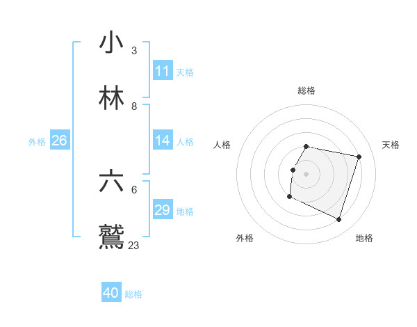 小林 六鷲さんを姓名の画数から五運を鑑定