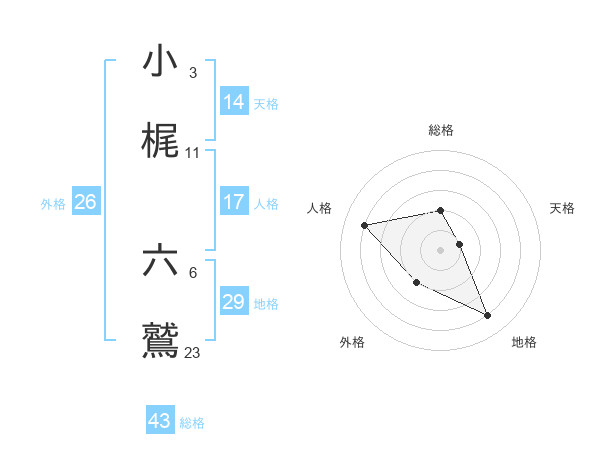 小梶 六鷲さんを姓名の画数から五運を鑑定