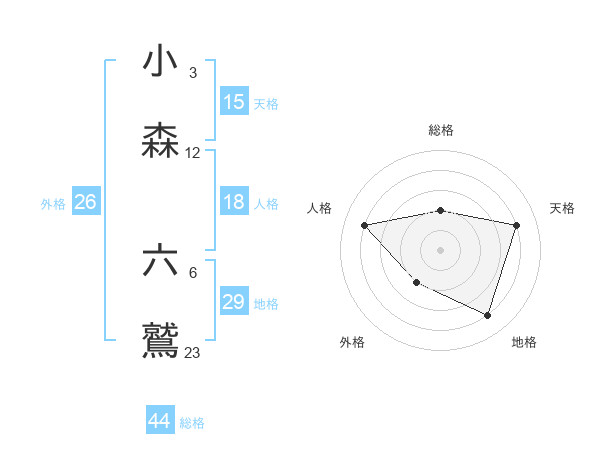 小森 六鷲さんを姓名の画数から五運を鑑定