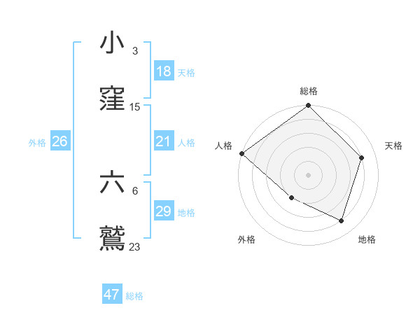小窪 六鷲さんの総格は47画の5点!