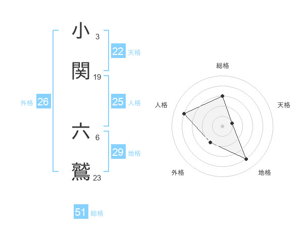 小関 六鷲さんを姓名の画数から五運を鑑定