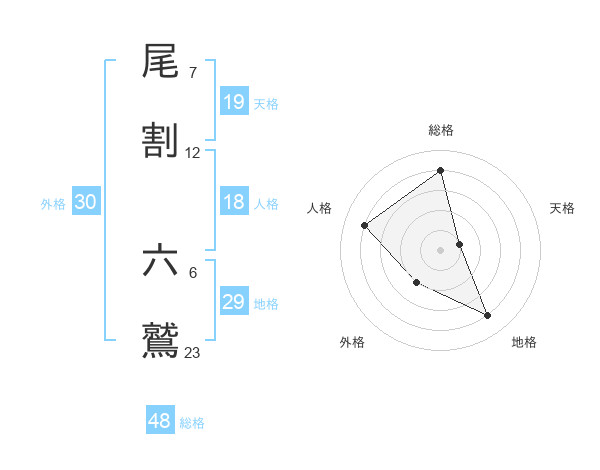 尾割 六鷲さんを姓名の画数から五運を鑑定