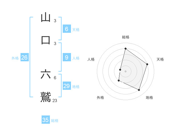 山口 六鷲さんを姓名の画数から五運を鑑定