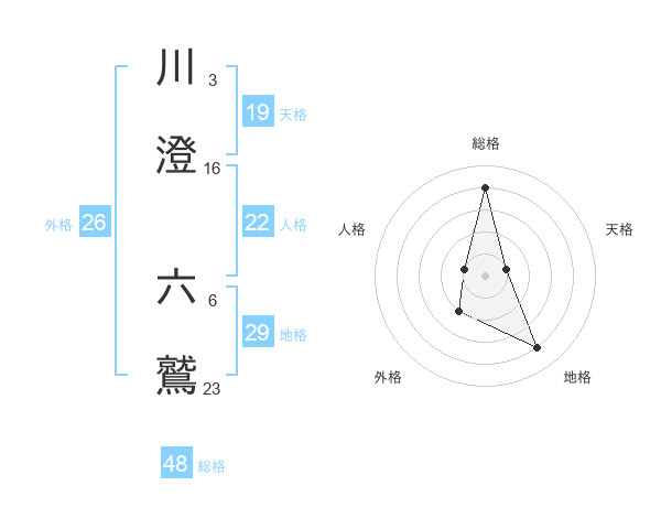 川澄 六鷲さんを姓名の画数から五運を鑑定