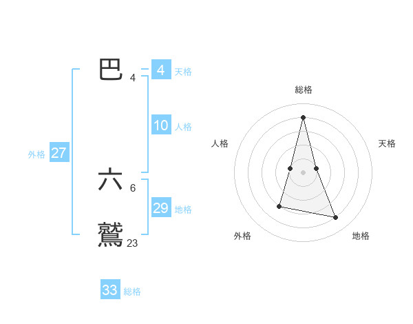 巴 六鷲さんを姓名の画数から五運を鑑定