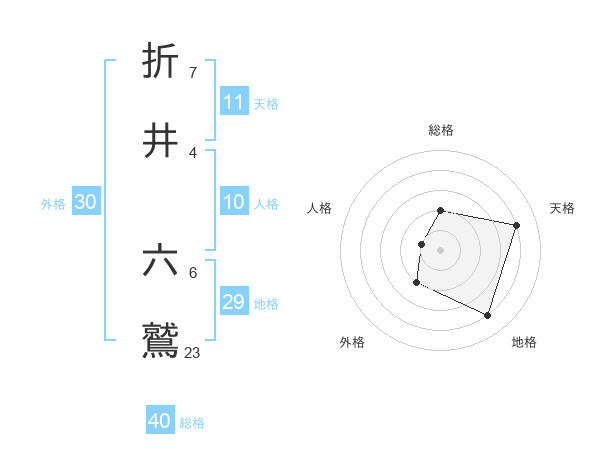 折井 六鷲さんを姓名の画数から五運を鑑定