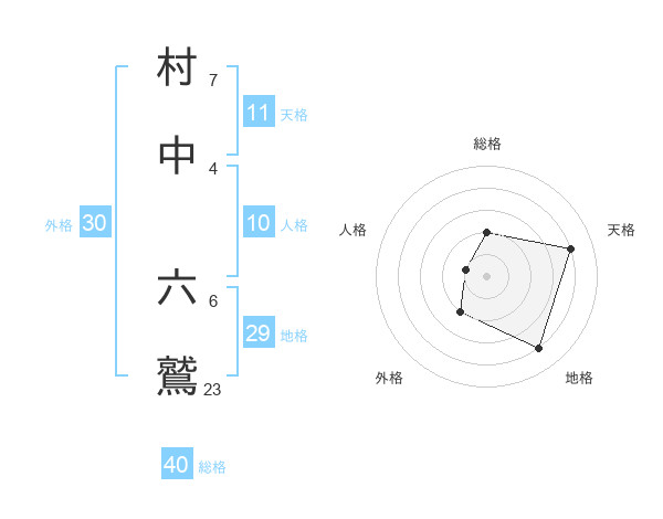 村中 六鷲さんを姓名の画数から五運を鑑定