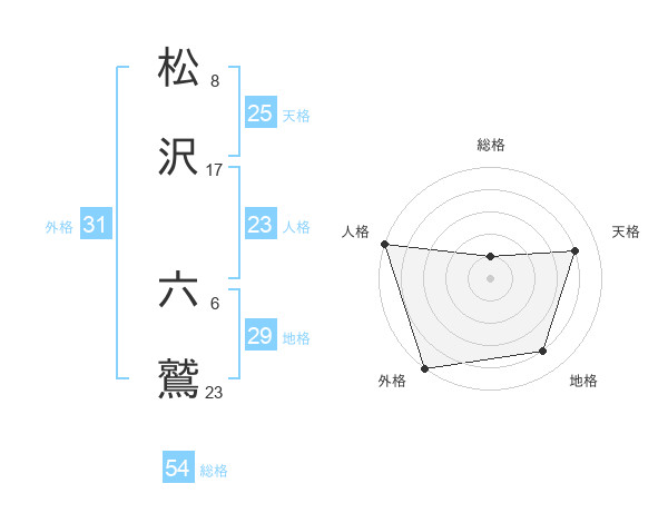 松沢 六鷲さんを姓名の画数から五運を鑑定