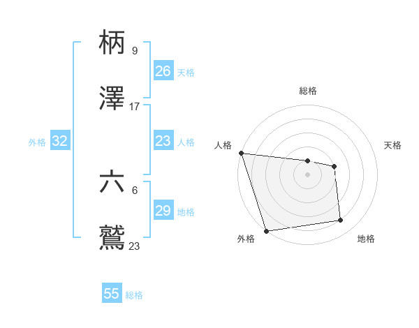 柄澤 六鷲さんを姓名の画数から五運を鑑定