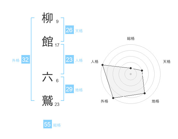 柳館 六鷲さんの総格は55画の1点!