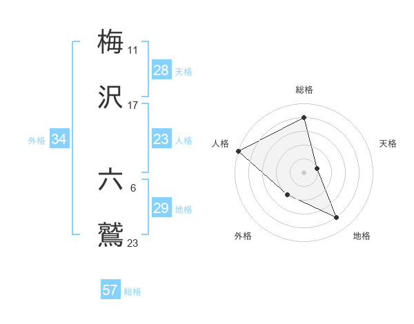 梅沢 六鷲さんの総格は57画の4点!