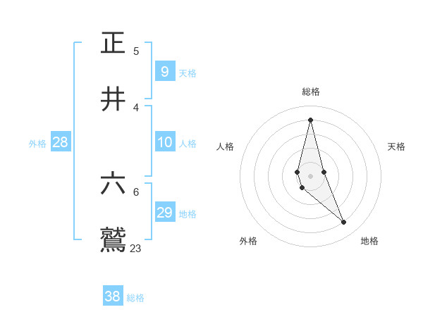正井 六鷲さんを姓名の画数から五運を鑑定