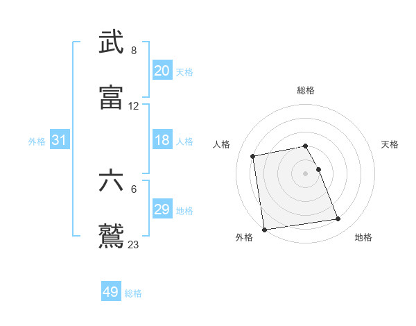 武富 六鷲さんの総格は49画の2点!