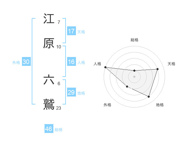 江原 六鷲さんを姓名の画数から五運を鑑定