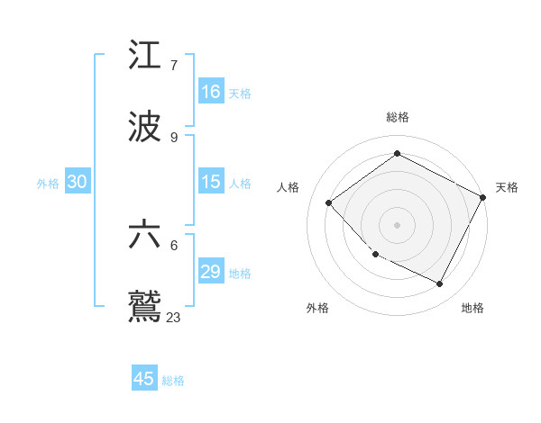 江波 六鷲さんを姓名の画数から五運を鑑定