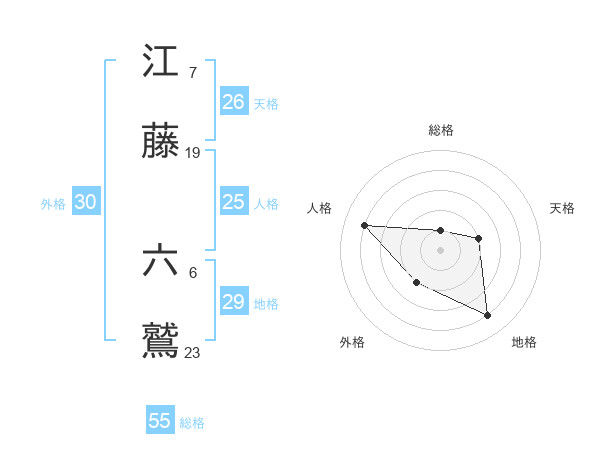 江藤 六鷲さんを姓名の画数から五運を鑑定