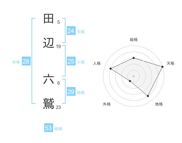 田辺 六鷲さんの天格は24画の5点!