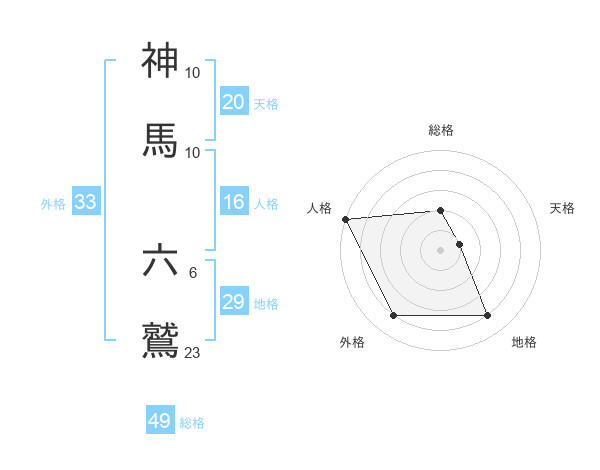 神馬 六鷲さんの総格は49画の2点!