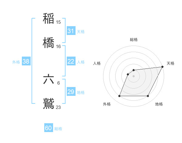 稲橋 六鷲さんの総格は60画の1点!
