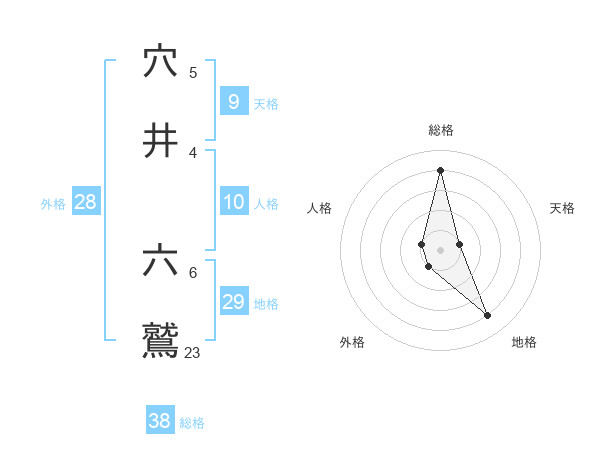 穴井 六鷲さんの総格は38画の4点!