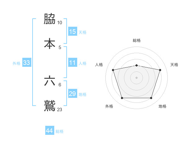 脇本 六鷲さんの総格は44画の2点!