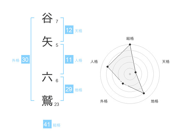 谷矢 六鷲さんの総格は41画の5点!