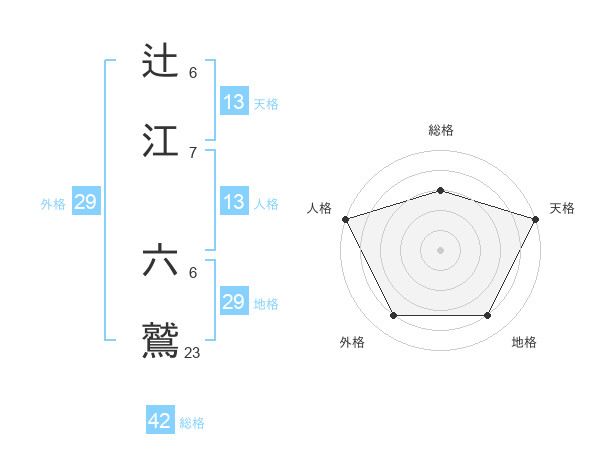 辻江 六鷲さんの総格は42画の3点!