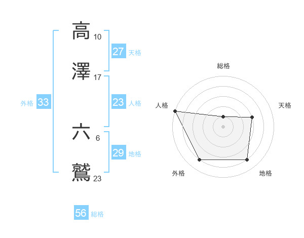 高澤 六鷲さんを姓名の画数から五運を鑑定