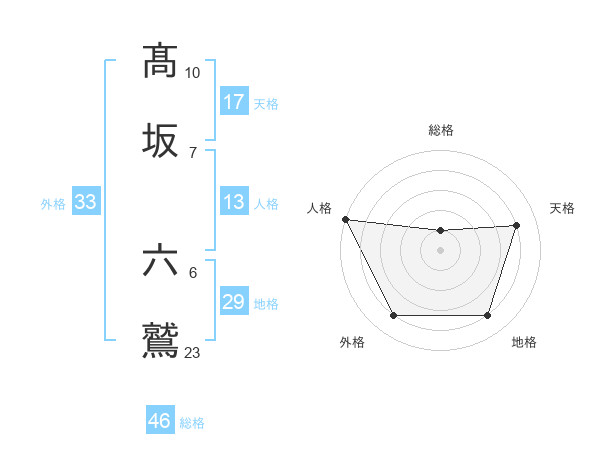 髙坂 六鷲さんの総格は46画の1点!