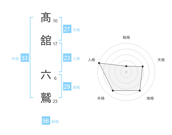 髙舘 六鷲さんの総格は56画の1点!
