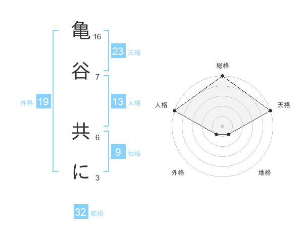 亀谷 共にさんを姓名の画数から五運を鑑定