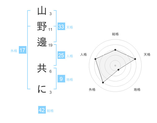 山野邊 共にさんの外格は17画の4点!