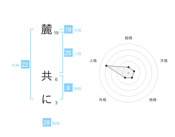 麓 共にさんの天格は19画の1点!