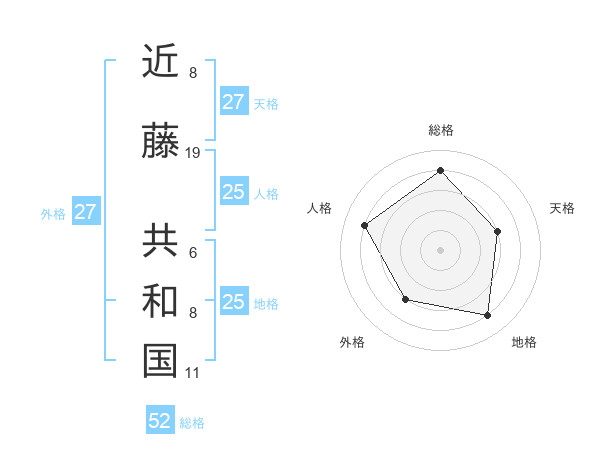 近藤 共和国さんを姓名の画数から五運を鑑定