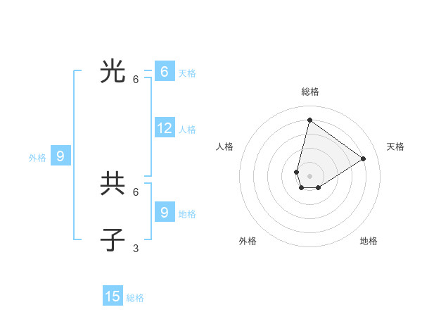光 共子さんの総格は15画の4点!