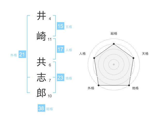 井崎 共志郎さんの総格は38画の4点!