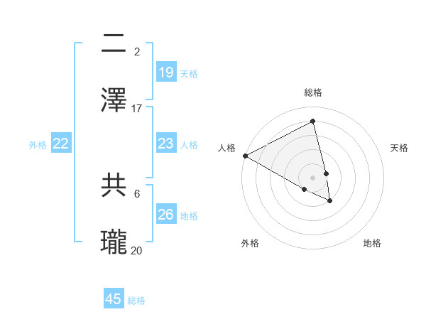 二澤 共瓏さんの総格は45画の4点!