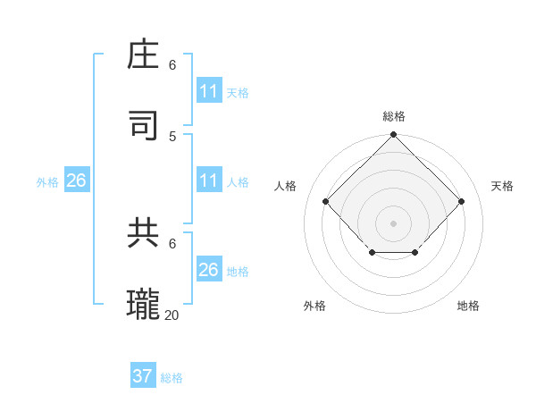 庄司 共瓏さんを姓名の画数から五運を鑑定