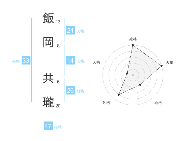 飯岡 共瓏さんを姓名の画数から五運を鑑定