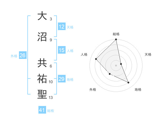 大沼 共祐聖さんの総格は41画の5点!