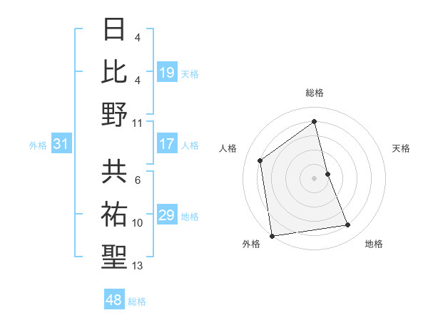 日比野 共祐聖さんを姓名の画数から五運を鑑定