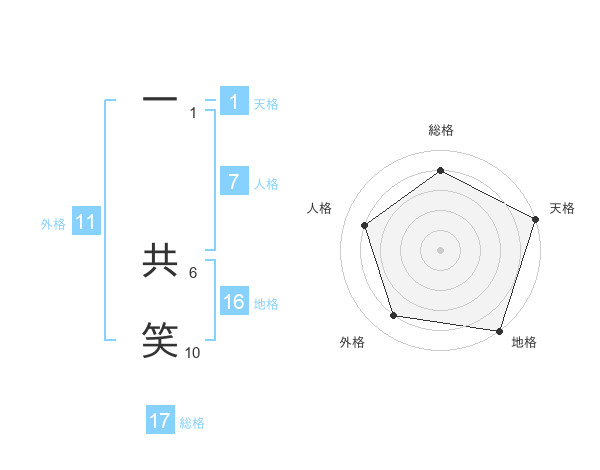 一 共笑さんの総格は17画の4点!