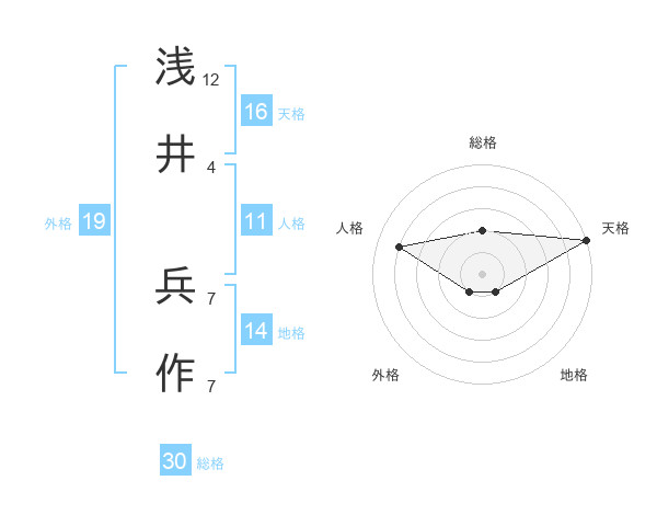 浅井 兵作さんを姓名の画数から五運を鑑定