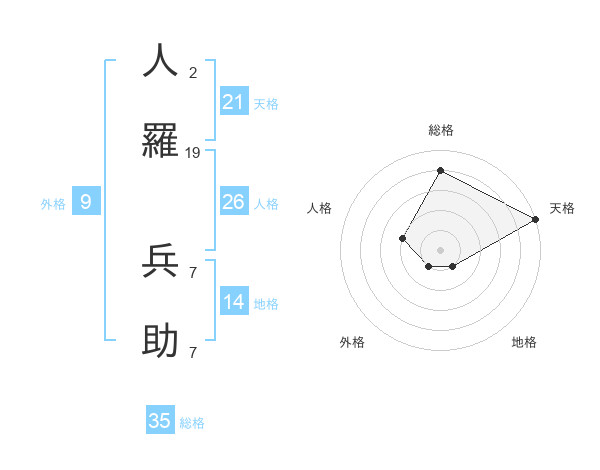 人羅 兵助さんの天格は21画の5点!