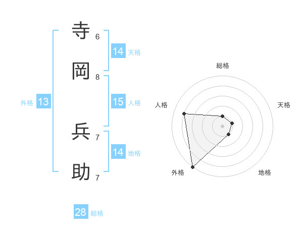 寺岡 兵助さんを姓名の画数から五運を鑑定