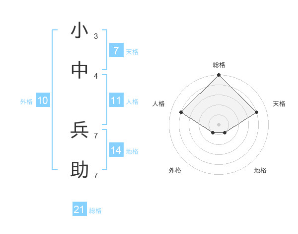 小中 兵助さんの総格は21画の5点!